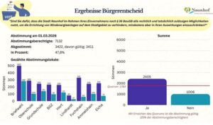Am 1. März 2026 haben die Bürgerinnen und Bürger von Naunhof mehrheitlich entschieden. Die Stadt soll alle rechtlichen Möglichkeiten nutzen, um Windenergieanlagen auf dem Gemeindegebiet zu verhindern. Die Entscheidung zeigt: Mitbestimmung und Akzeptanz sind entscheidend für die Umsetzung der Energiewende.